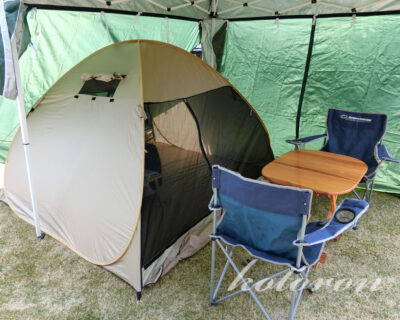 薄手のテントなので直射日光が当たるとちょっと熱いですね。