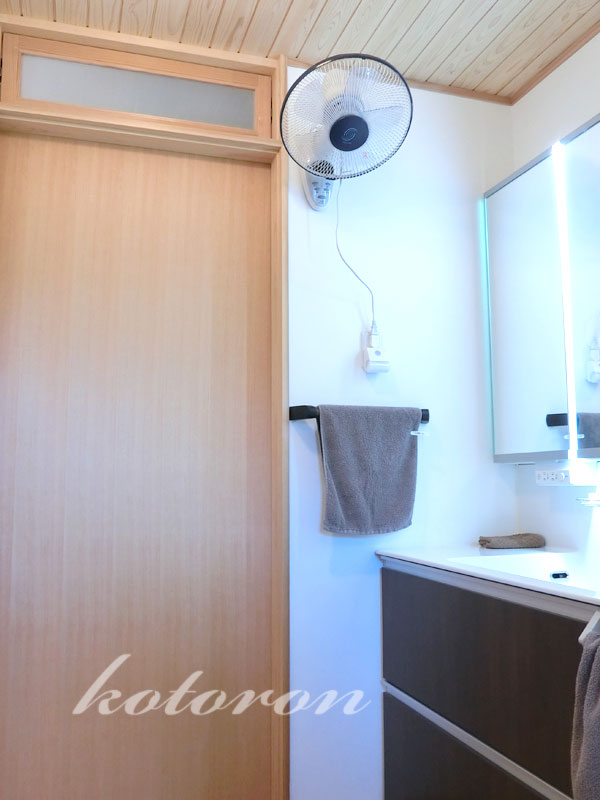 今回のWeb内覧会は、洗面所に壁掛け扇風機は、